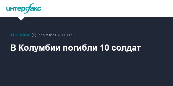 Лондон. 22 октября. ИНТЕРФАКС - Десять колумбийских солдат убиты в результате взрыва, организованного леворадикальной повстанческой группировкой, передает британская телерадиокорпорация Би-Би-Си.