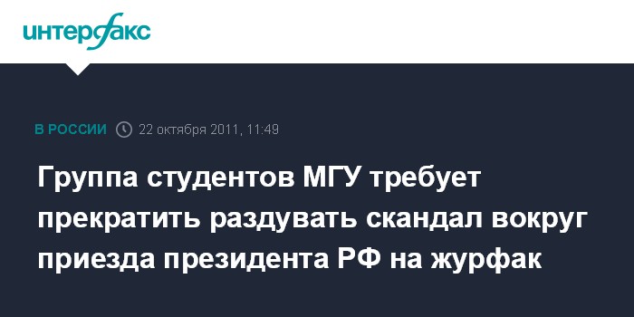 Москва. 22 октября. INTERFAX.RU - Студенты МГУ открыли сбор подписей для тех, кому надоело искусственное раздувание ситуации вокруг приезда президента РФ Дмитрия Медведева на факультет журналистики университета.