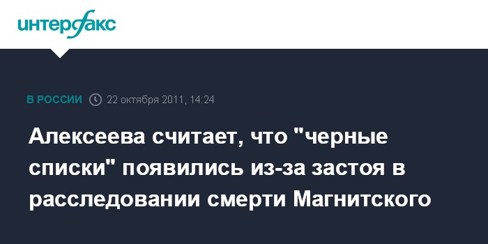 Алексеева заявила "Интерфаксу" в субботу, что американского и российского "черных списков" не было бы, если бы в России провели эффективное расследование гибели в следственном изоляторе юриста фонда Hermitage capital Сергея Магнитского. "Не думаю, что появление российского списка станет серьезным моментом, который приведет к похолоданию. В дипломатии приняты ответные меры. От этой меры не будет ни горячо, ни холодно", - считает она.