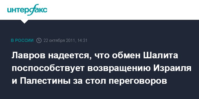 Лавров надеется, что обмен Шалита поспособствует возвращению Израиля и Палестины за стол переговоров