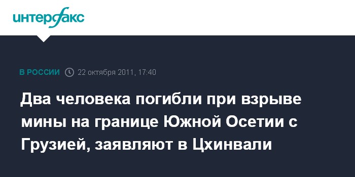 Цхинвали. 22 октября. INTERFAX.RU - На с Грузией в населенном пункте Икоти Цхинвальского района Южной Осетии взорвалась мина, сообщили "Интерфаксу" в субботу в прокуратуре республики.