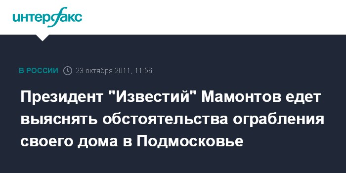 Президент "Известий" Мамонтов едет выяснять обстоятельства ограбления своего дома в Подмосковье