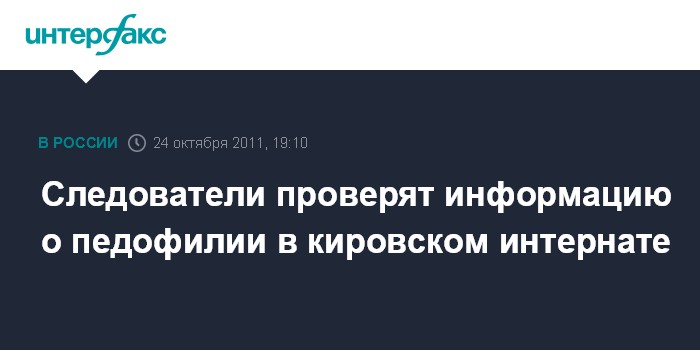 Киров. 24 октября. INTERFAX.RU - Следственные органы Кировской области проводят проверку в связи с появлением в Интернете информации о том, что в одном из интернатов Кирова дети подвергались сексуальному насилию.