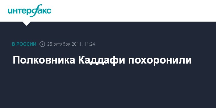 Лондон. 25 октября. INTERFAX.RU - Бывший ливийский лидер Муамар Каддафи был похоронен во вторник на рассвете, сообщил британский телеканал Sky News.