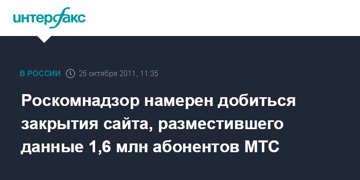 Роскомнадзор намерен добиться закрытия сайта, разместившего данные 1,6 млн абонентов МТС