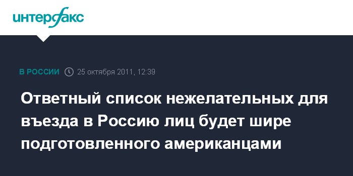 Москва. 25 октября. INTERFAX.RU - Утвержденный Москвой список граждан США, пребывание которых нежелательно в России, не симметричен американскому, в него включено большее число лиц, сообщил глава МИД РФ Сергей Лавров.