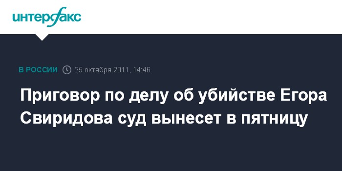 Москва. 25 октября. INTERFAX.RU - Мосгорсуд огласит приговор по делу об убийстве болельщика "Спартака" Егора Свиридова 28 октября.