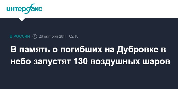 В память о погибших на Дубровке в небо запустят 130 воздушных шаров