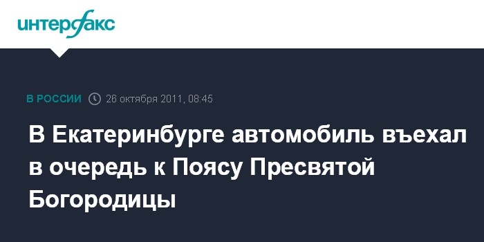 Екатеринбург. 26 октября. INTERFAX.RU - В Екатеринбурге водитель иномарки не справилась с управлением и въехала в очередь верующих, стоящих у Свято-Троицкого кафедрального собора для поклонения Поясу Пресвятой Богородицы.