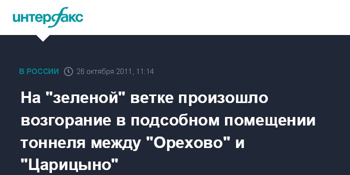 На "зеленой" ветке произошло возгорание в подсобном помещении тоннеля между "Орехово" и "Царицыно"