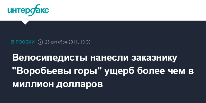 Москва. 26 октября. INTERFAX.RU - Стихийные велосипедные трассы в заказнике "Воробьевы Горы" нанесли серьезный ущерб этой особо охраняемой природной территории, заявил "Интерфаксу" источник в столичной мэрии в среду. "Стоимость рекультивации поврежденных земель оценена почти в 33 млн рублей (более 1 млн долларов)", - сказал собеседник агентства.