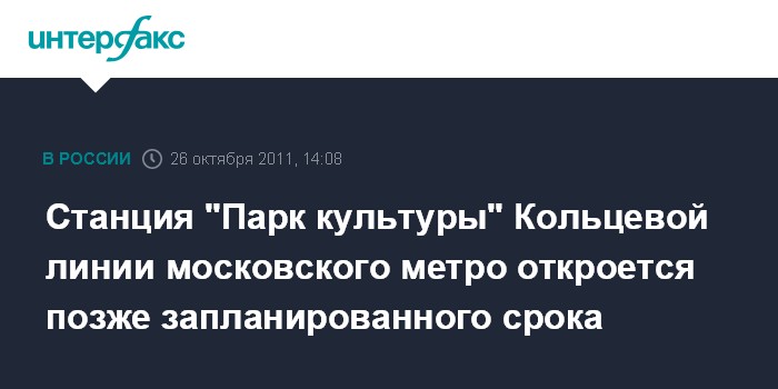 Cтанция "Парк культуры" Кольцевой линии московского метро откроется позже запланированного срока