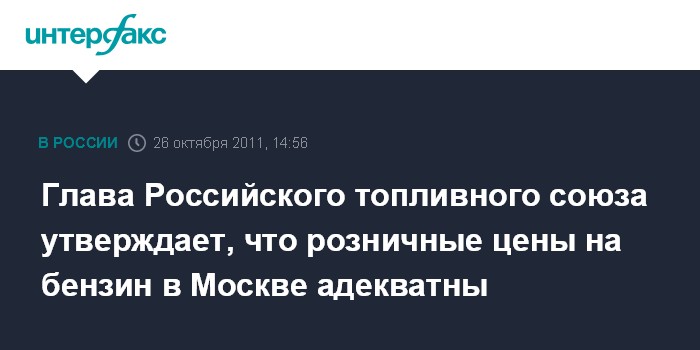 Глава Российского топливного союза утверждает, что розничные цены на бензин в Москве адекватны