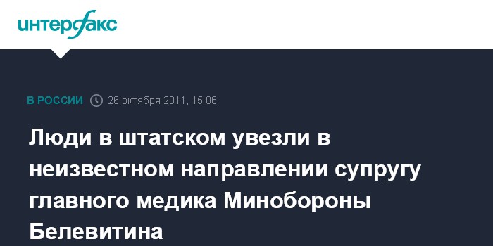 Люди в штатском увезли в неизвестном направлении супругу главного медика Минобороны Белевитина
