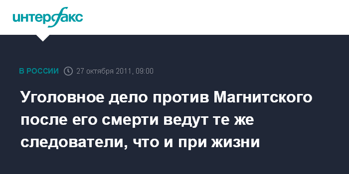Уголовное дело против Магнитского после его смерти ведут те же следователи, что и при жизни