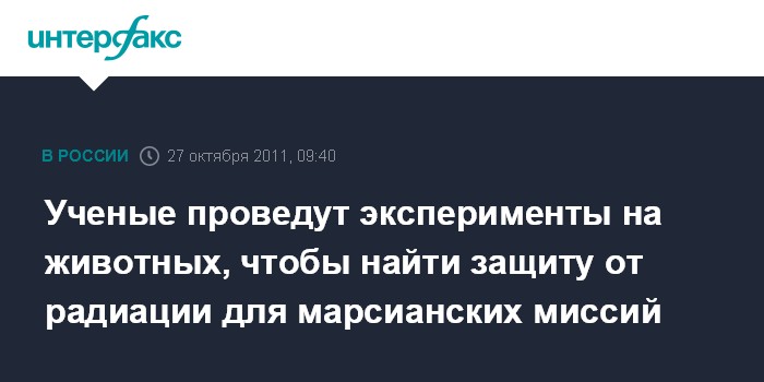 Москва. 27 октября. INTERFAX.RU - Проблема защиты экипажа от радиации в длительном полете к Марсу является наиболее трудноразрешимой, для ее решения планируется провести в ближайшие годы ряд экспериментов, в том числе на животных, сообщил "Интерфаксу-АВН" вице-президент РАН академик Анатолий Григорьев.