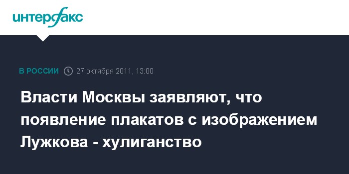Москва. 27 октября. INTERFAX.RU - Департамент СМИ и рекламы Москвы расценивает расклейку плакатов с изображением Юрия Лужкова у офисов Банка Москвы как хулиганство.