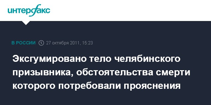Челябинск. 27 октября. INTERFAX.RU - В Нязепетровском районе Челябинской области в четверг завершилась эксгумация тела местного жителя Руслана Айдерханова, который был обнаружен повешенным в сентябре в Свердловской области, где он проходил срочную службу.
