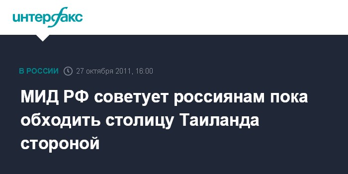 Москва.27 октября. INTERFAX.RU - МИД России настойчиво рекомендует россиянам не посещать охваченный стихийным бедствием Бангкок.