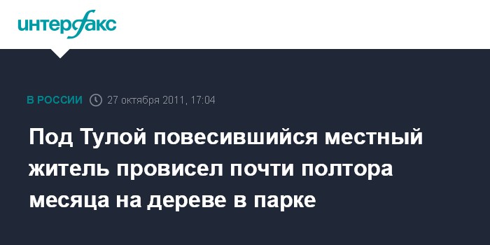 Под Тулой повесившийся местный житель провисел почти полтора месяца на дереве в парке