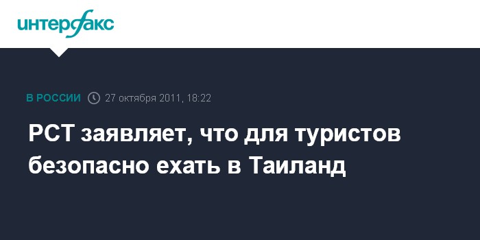 Москва. 27 октября. INTERFAX.RU - Несмотря на наводнение в Бангкоке и в других провинциях на севере Таиланда, туристы могут не опасаться ехать на отдых в эту страну, заявила пресс-секретарь Российского союза туриндустрии (РСТ) Ирина Тюрина в четверг порталу "Интерфакс-Туризм".