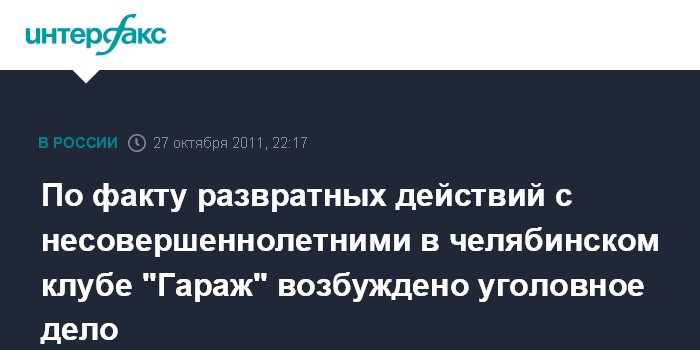 По факту развратных действий с несовершеннолетними в челябинском клубе "Гараж" возбуждено уголовное дело