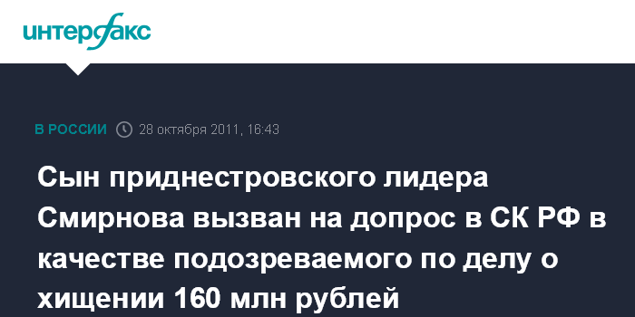 Сын приднестровского лидера Смирнова вызван на допрос в СК РФ в качестве подозреваемого по делу о хищении 160 млн рублей