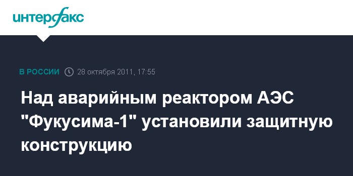 Токио. 28 октября. INTERFAX.RU - Первый реактор японской АЭС "Фукусима-1" накрыт защитной конструкцией, сообщили в пятницу в компании TEPCO, операторе станции.