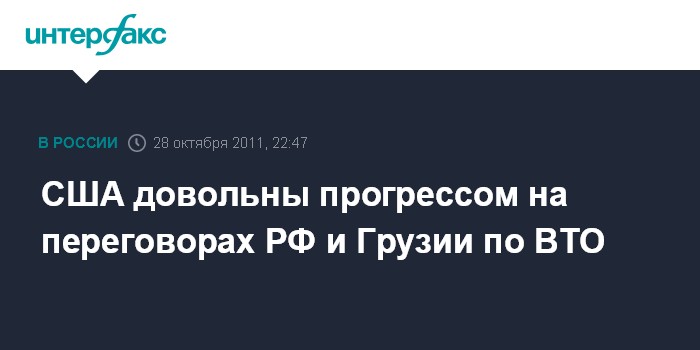 Вашингтон. 28 октября. ИНТЕРФАКС - США восприняли как обнадеживающее известие о том, что на переговорах между Грузией и РФ при посредничестве Швейцарии о вступлении России в ВТО достигнут существенный прогресс, заявила в пятницу пресс-секретарь госдепартамента США Виктория Нуланд, отвечая на вопрос корреспондента "Интерфакса".