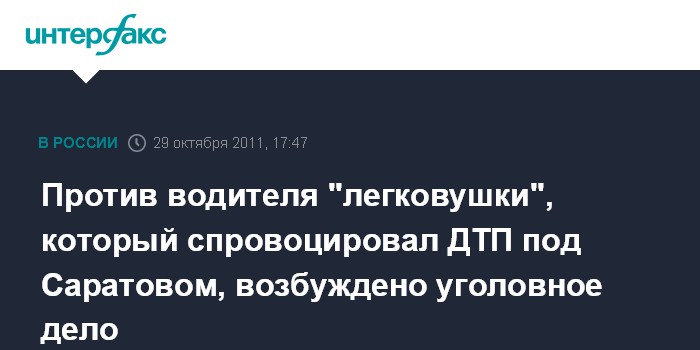 Дело возбуждено против водителя машины ВАЗ-21099 62 года рождения, который по предварительной информации, стал виновником ДТП, сообщил "Интерфаксу" пресс-секретарь ГУ МВД Саратовской области Алексей Егоров.