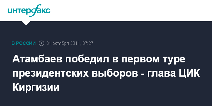 Бишкек. 31 октября. ИНТЕРФАКС - Действующий премьер Киргизии, 55-летний Алмазбек Атамбаев одержал победу на президентских выборах.