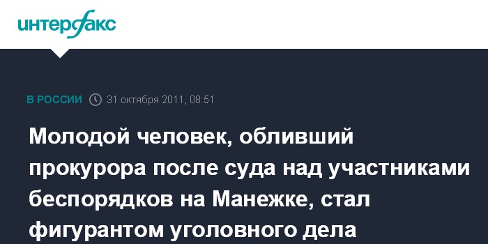 Молодой человек, обливший прокурора после суда над участниками беспорядков на Манежке, стал фигурантом уголовного дела