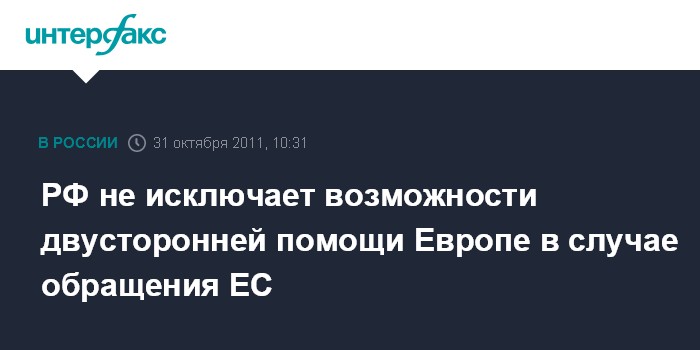 РФ не исключает возможности двусторонней помощи Европе в случае обращения ЕС