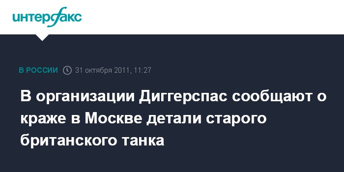 В организации Диггерспас сообщают о краже в Москве детали старого британского танка