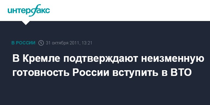 В Кремле подтверждают неизменную готовность России вступить в ВТО