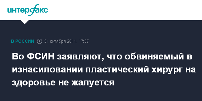 Во ФСИН заявляют, что обвиняемый в изнасиловании пластический хирург на здоровье не жалуется