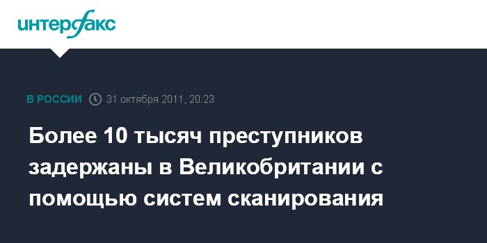 Лондон. 31 октября. INTERFAX.RU - Более 10 тысяч преступников, включая насильников и убийц, задержаны в Великобритании за последние шесть лет после внедрения систем сканирования информации о пассажирах, сообщает в понедельник британская корпорация BBC.