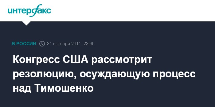 Киев/Вашингтон. 31 октября. INTERFAX.RU - Конгресс США рассмотрит резолюцию, касающуюся судебных процессов над представителями украинской оппозиции.
