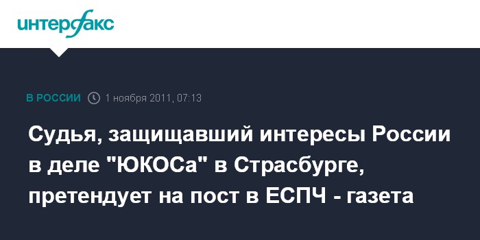 Судья, защищавший интересы России в деле "ЮКОСа" в Страсбурге, претендует на пост в ЕСПЧ - газета