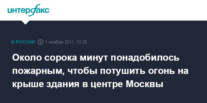 Около сорока минут понадобилось пожарным, чтобы потушить огонь на крыше здания в центре Москвы