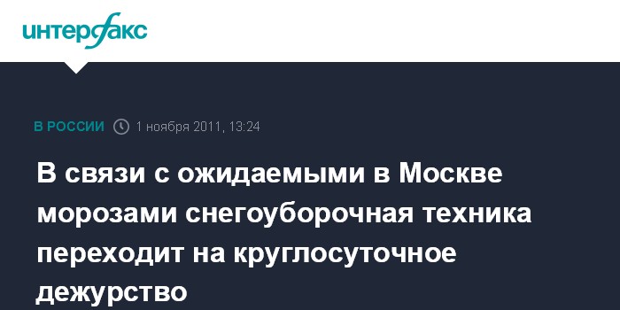 В связи с ожидаемыми в Москве морозами снегоуборочная техника переходит на круглосуточное дежурство