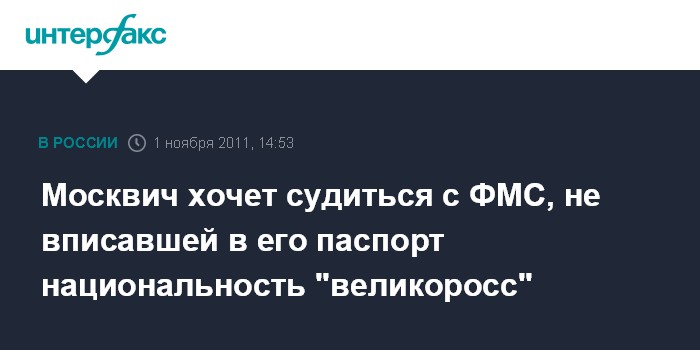 Москвич хочет судиться с ФМС, не вписавшей в его паспорт национальность "великоросс"