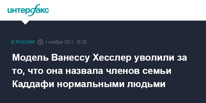 Модель Ванессу Хесслер уволили за то, что она назвала членов семьи Каддафи нормальными людьми