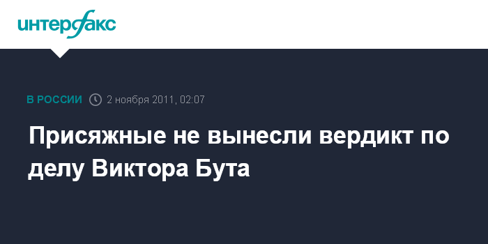 Нью-Йорк. 2 ноября. ИНТЕРФАКС - Суд присяжных Федерального суда Нью-Йорка не вынес вердикт по делу Виктора Бута, совещание продолжится в среду, сообщают местные СМИ.