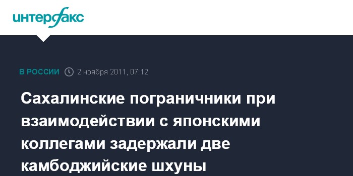 Южно-Сахалинск. 2 ноября. ИНТЕРФАКС-ДАЛЬНИЙ ВОСТОК - Две камбоджийские шхуны задержаны в исключительной экономической зоне Японии российскими пограничниками при взаимодействии с японскими коллегами, сообщили агентству "Интерфакс - Дальний Восток" в группе общественных связей Сахалинского погрануправления береговой охраны (СПУБО) ФСБ РФ.