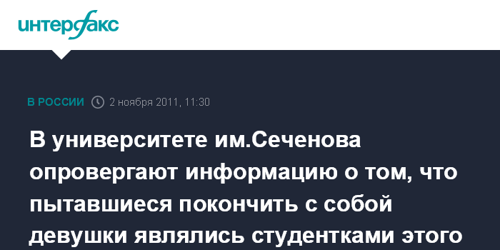 В университете им.Сеченова опровергают информацию о том, что пытавшиеся покончить с собой девушки являлись студентками этого вуза