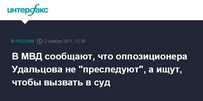 В МВД сообщают, что оппозиционера Удальцова не "преследуют", а ищут, чтобы вызвать в суд