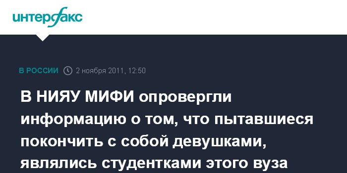 В НИЯУ МИФИ опровергли информацию о том, что пытавшиеся покончить с собой девушками, являлись студентками этого вуза