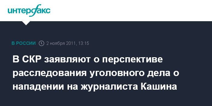 Москва. 2 ноября. INTERFAX.RU - Официальный представитель СК РФ Владимир Маркин заявил, что у следствия есть перспективы раскрыть уголовное дело о нападении на журналиста газеты "Коммерсант" Олега Кашина.