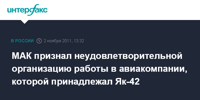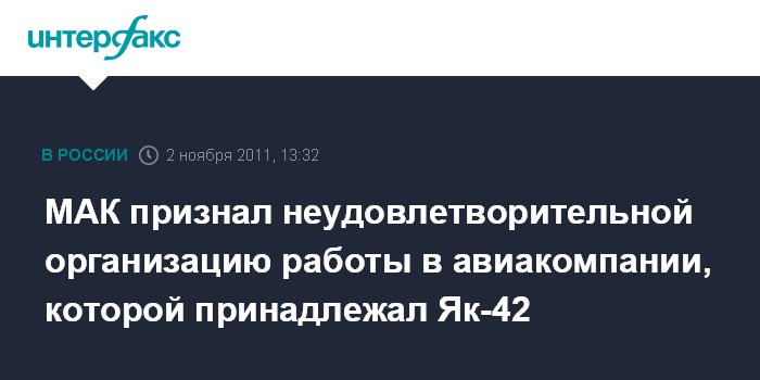 Москва.2 ноября. INTERFAX.RU - В МАК заявляют, что организационная структура компании "Як-сервис" не обеспечивала безопасность выполнения полетов самолета Як-42.